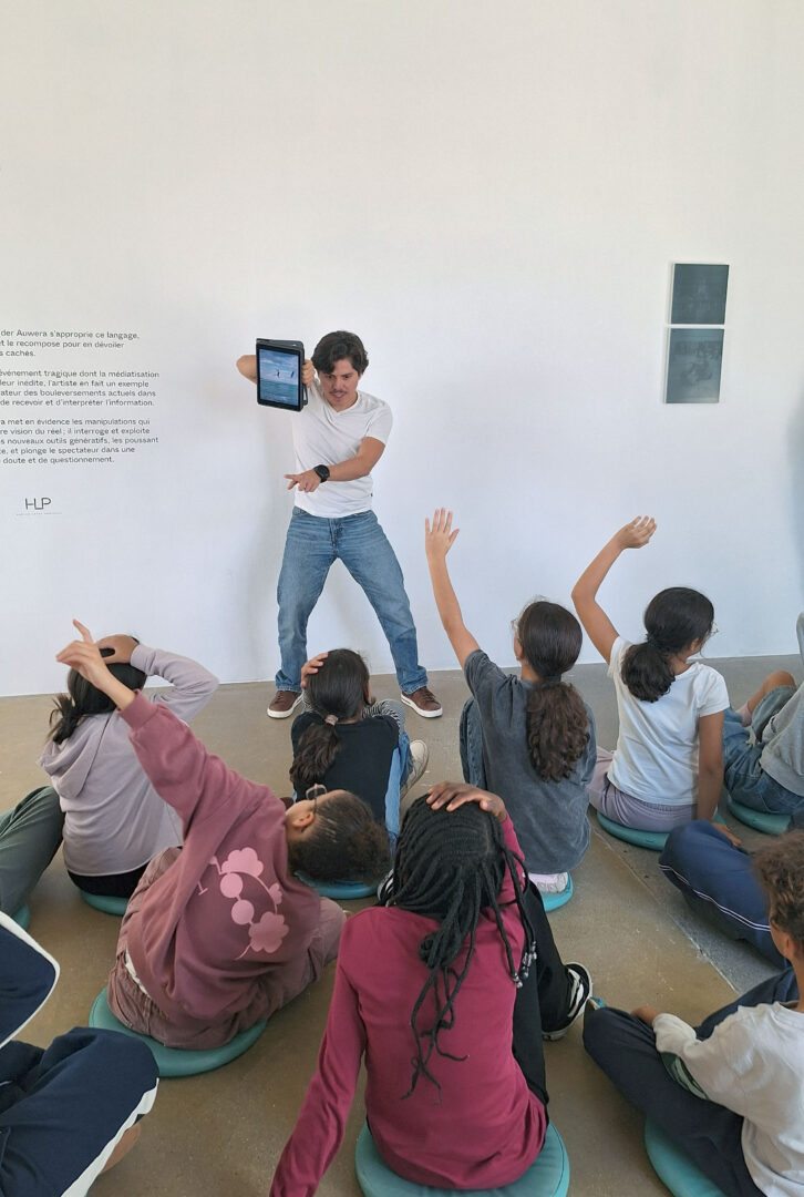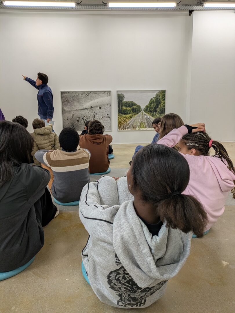 Visite de scolaires de l’exposition Saturn, d’Emmanuel Van der Auwera. CAP Saint-Fons, 2025.