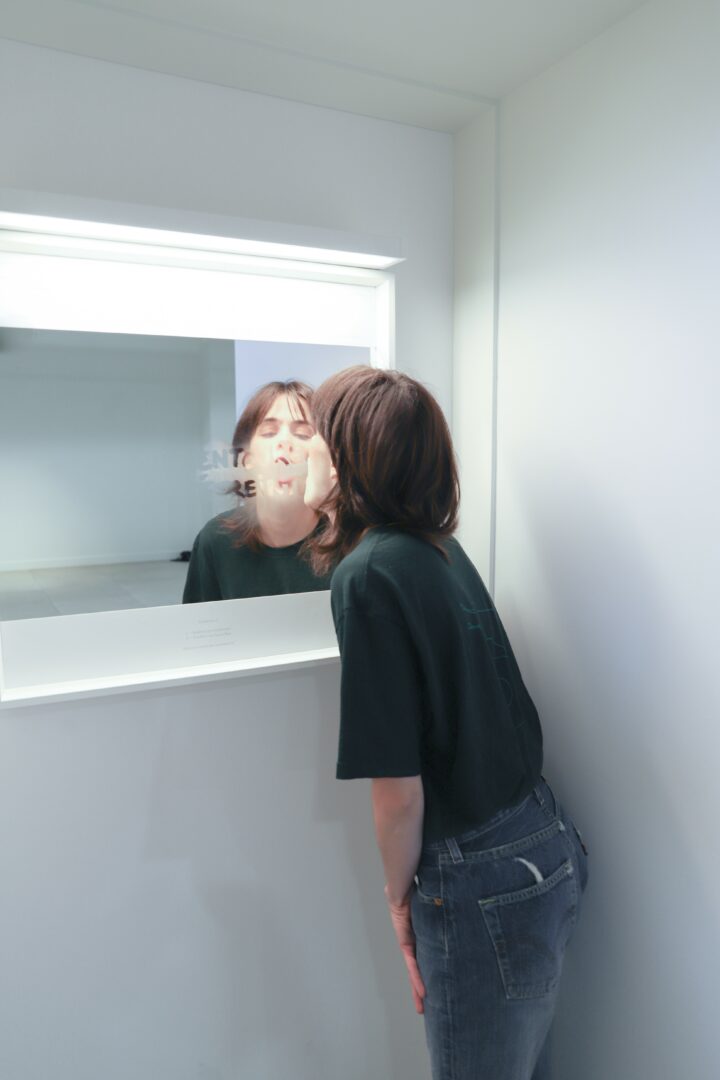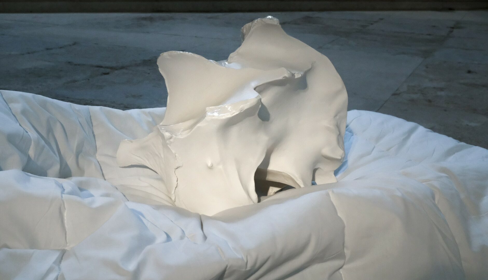 Elle se questionne également sur le corps parlant, caisse de résonance et sur ce que contient l’oralité, de la parole au baiser. Par la question posée du négatif, de la contre-forme, du corps empreinte, elle cherche une forme d’abstraction dans la figure pour faire glisser le tangible vers l’imaginaire.